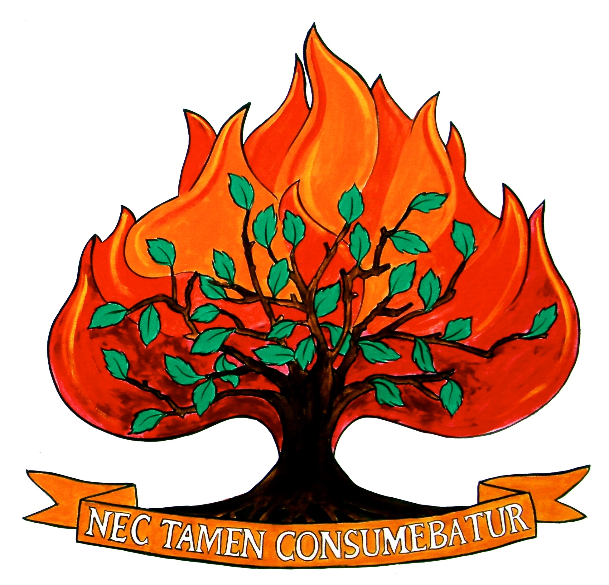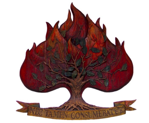 The Burning Bush has been a symbol used by Presbyterians for many years. At St. Andrew's we have our own version of the Burning Bush. Having our own Burning Bush above the main doors of the church was proposed by the late Ralph Dykeman. It was designed by Mary Scobie and Carved by Paul Bogaard in 1992 (the colours were added in 2015). The image below was painted by Peter Manchester, which is found on our church sign.